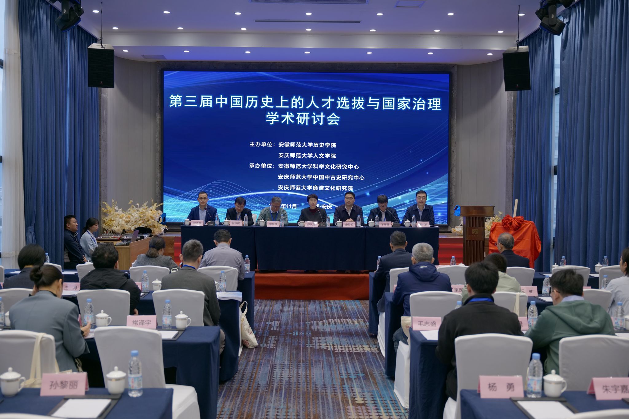 11月7日至9日,由安徽师范大学历史学院、安庆师范大学人文学院联合主办,安徽师范大学科举文化研究中心、安庆师范大学中国中古史研究中心、安庆师范大学廉洁文化研究院共同承办的第三届“中国历史上的人才选拔与国家治理”学术研讨会在学校召开。来自中国社会科学院(中国历史研究院)、山东大学、华东师范大学、中国政法大学、河南大学、安徽师范大学等知名高校和科研机构的专家学者以及重点学术期刊编辑等共70余人齐聚一堂,深入交流研讨中国政治制度史、人才选拔史和国家治理史等研究的新领域、新范式、新成果,为服务国家治理体系和治理能力现代化重大战略贡献力量。